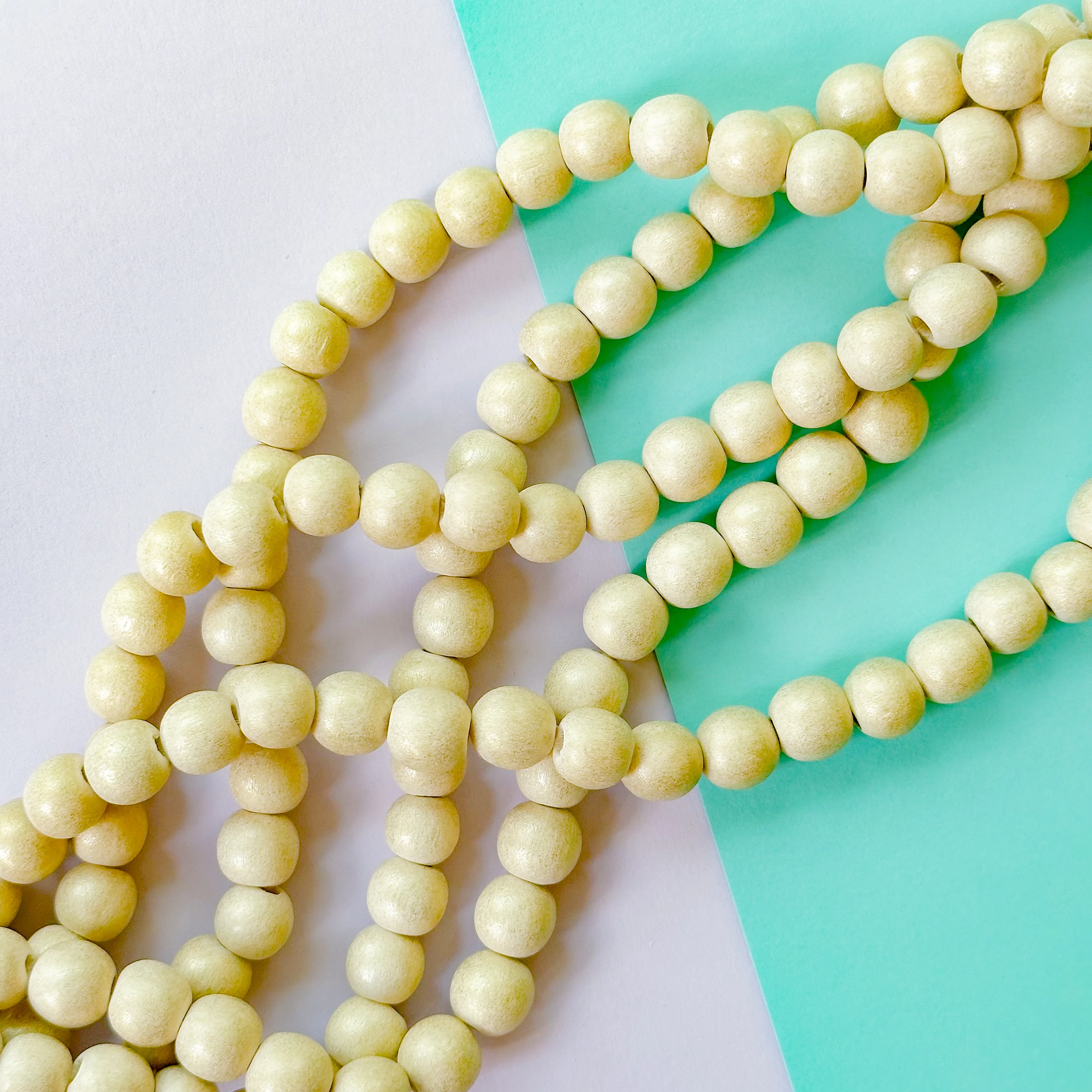 Wood rounds in a neutral off-white with soft, pearlescent finish.Â