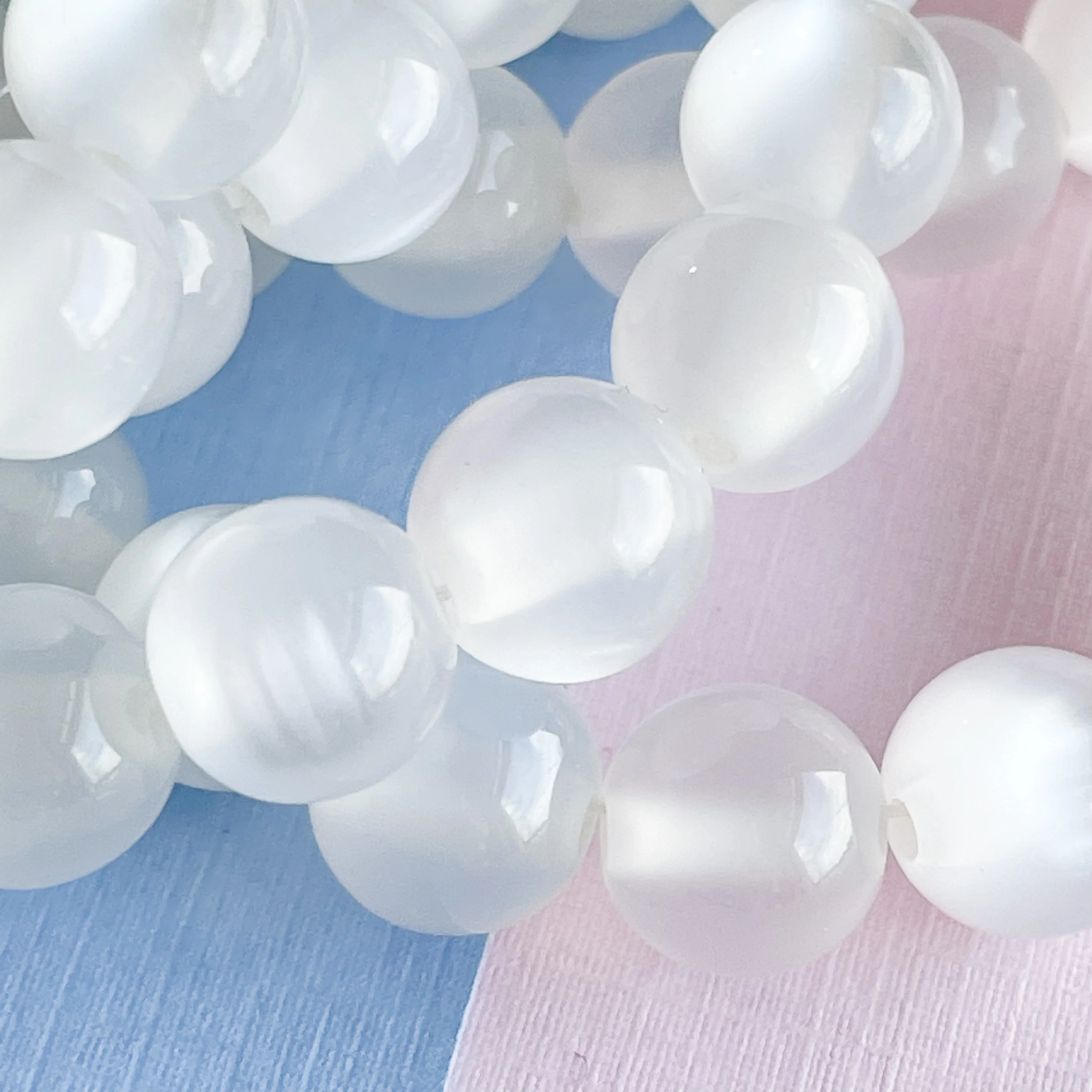 Mystic white translucent acrylic beads.