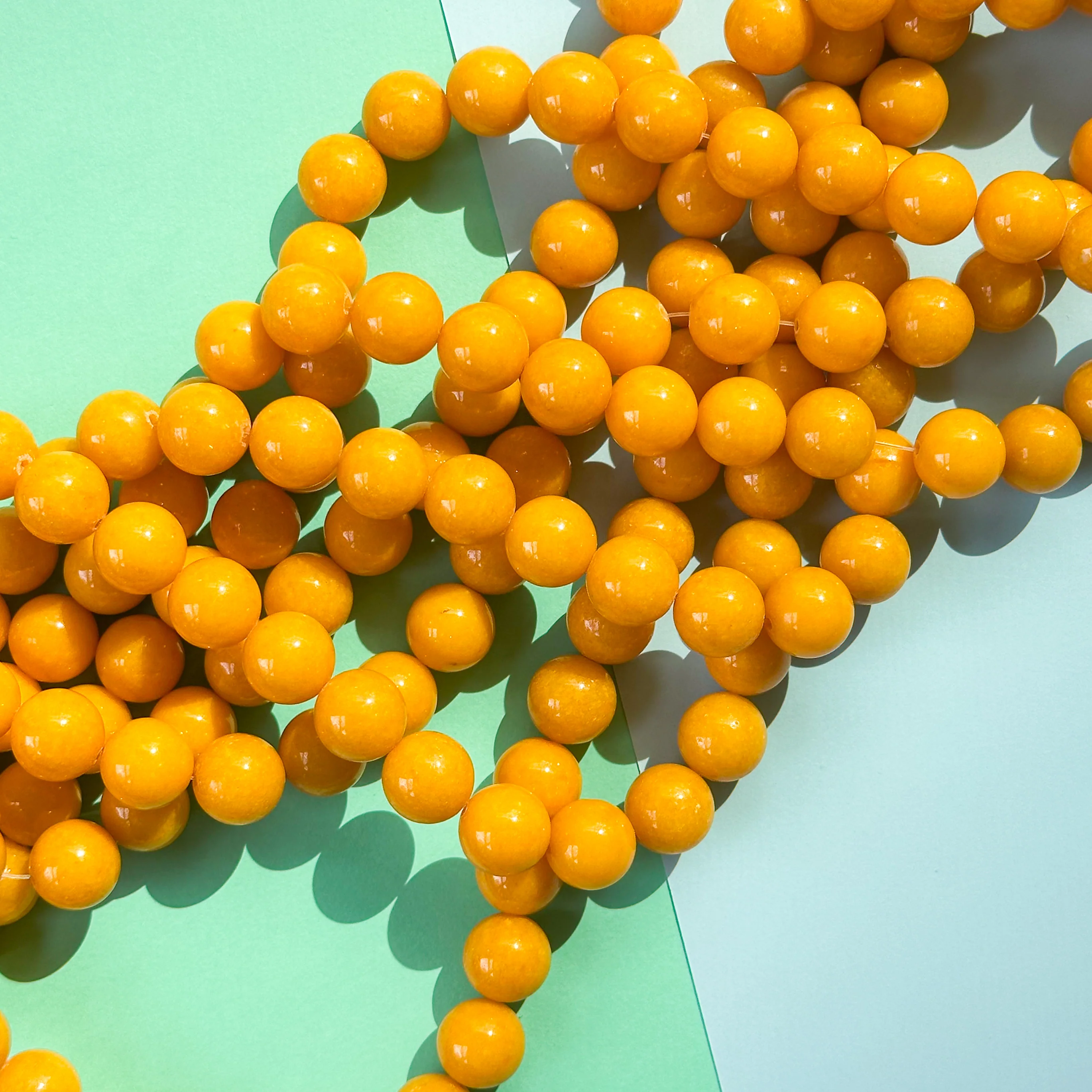 Shiny Calcite rounds in saturated, color-treated, cheerful yellow.