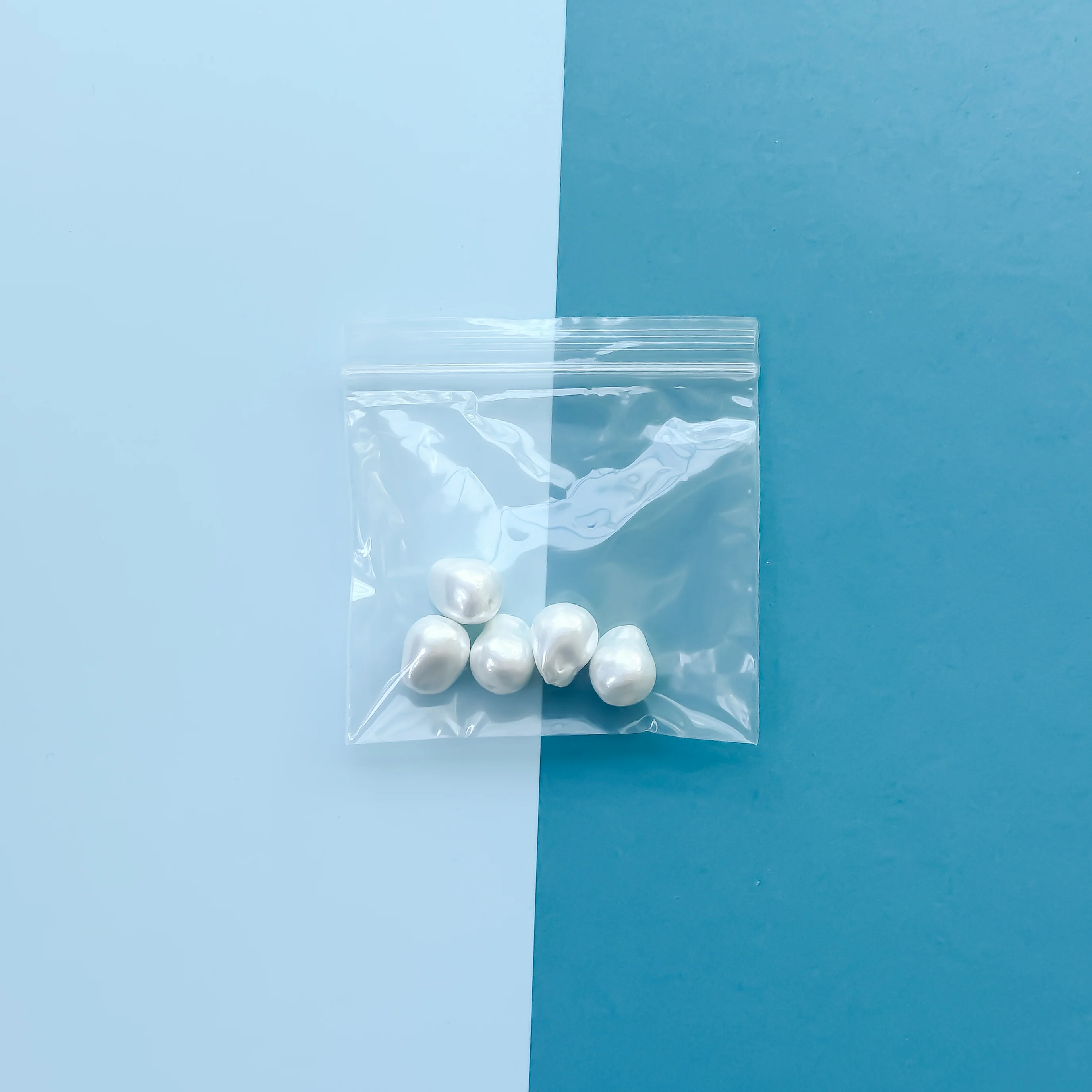 Lustrous, white baroque pearls made of reconstituted shell.Â