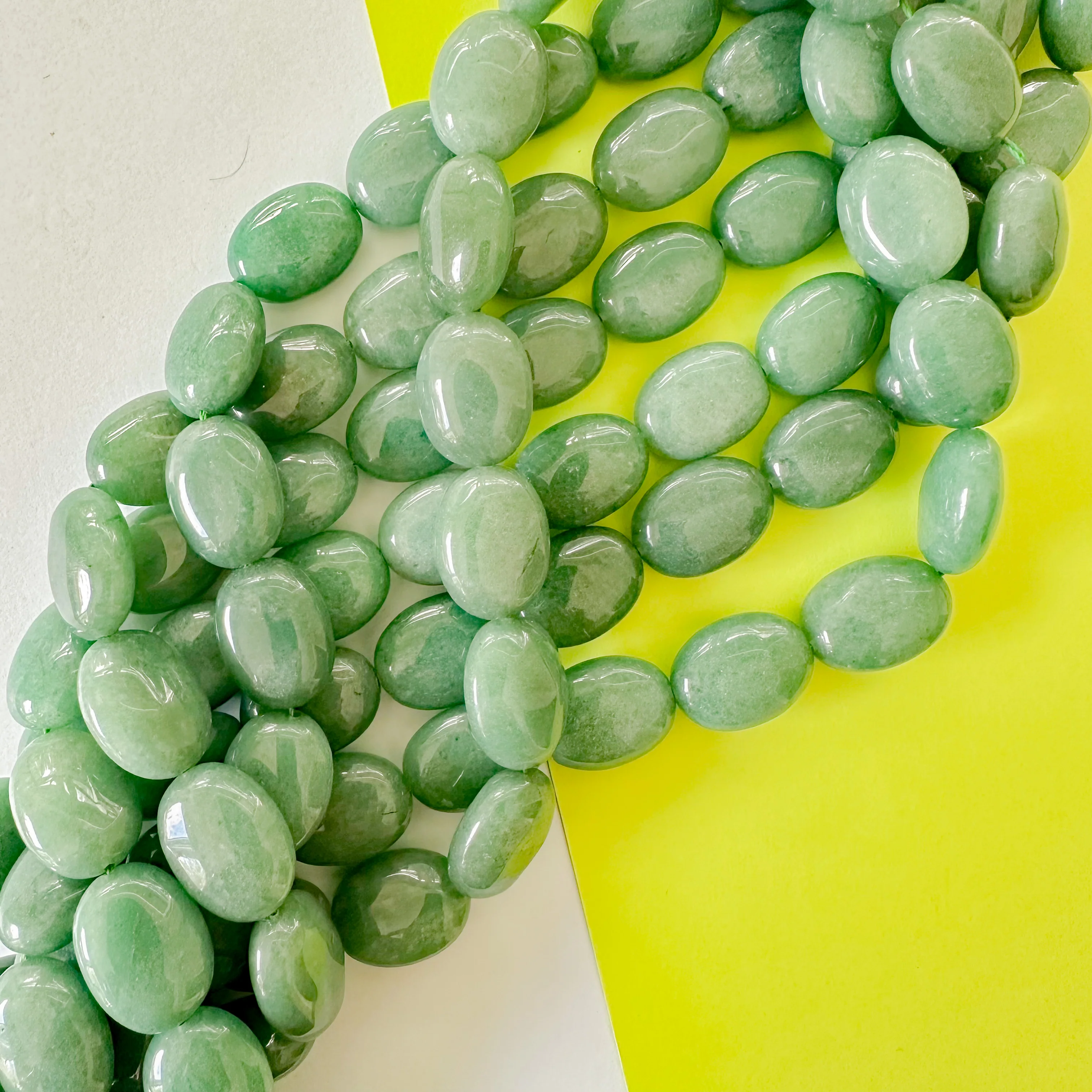 15mm Forest Green Dyed Calcite Puffed Oval Strand