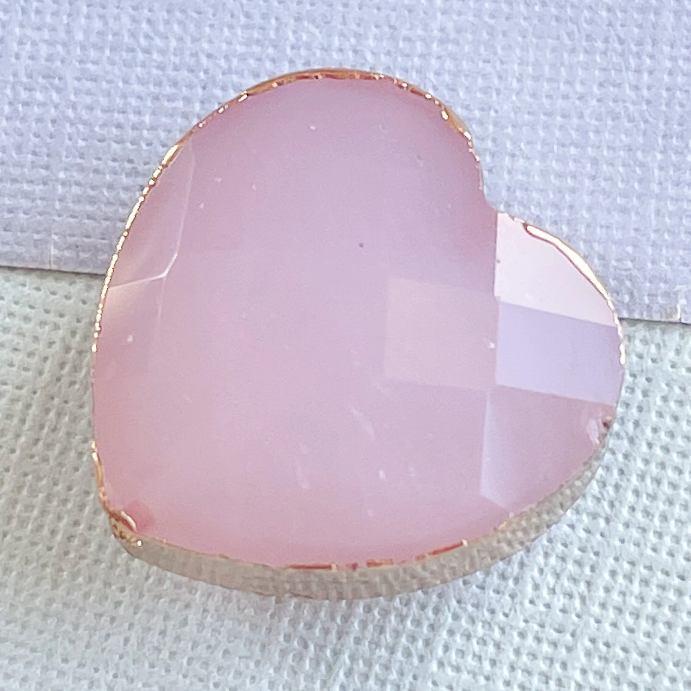 Center drilled soft pastel purple faceted crystal hearts with a faux gold plated bezel.