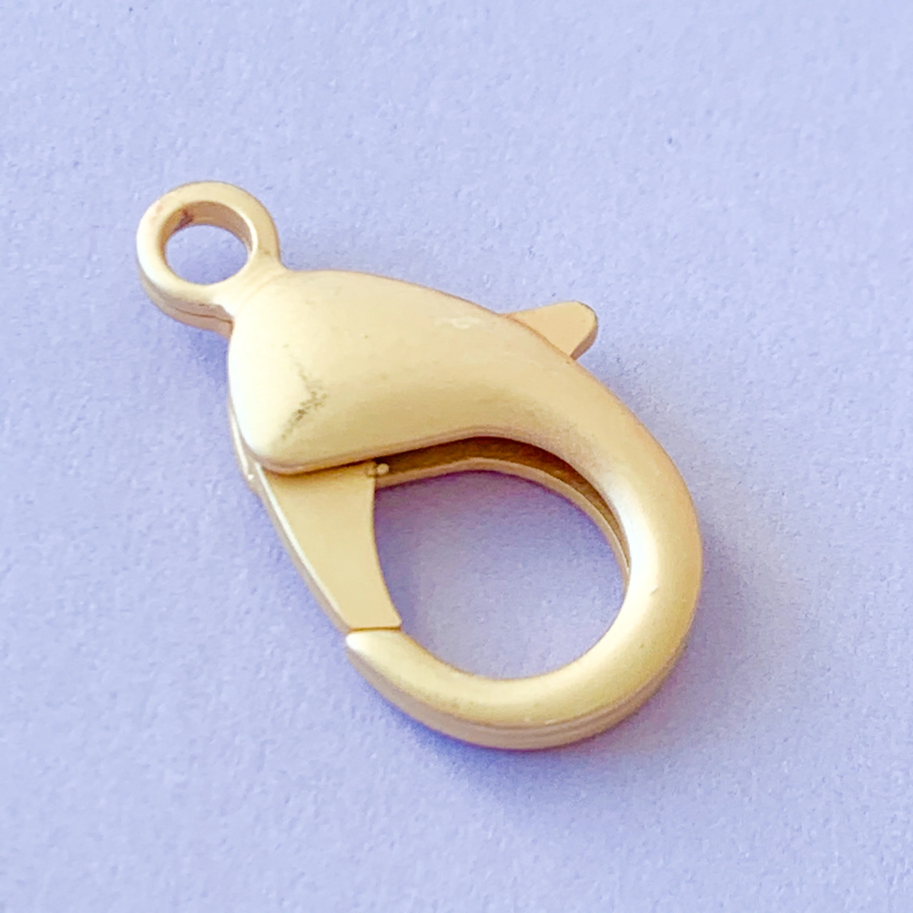 A set of two electroplated brushed gold lobster claw clasps.Â