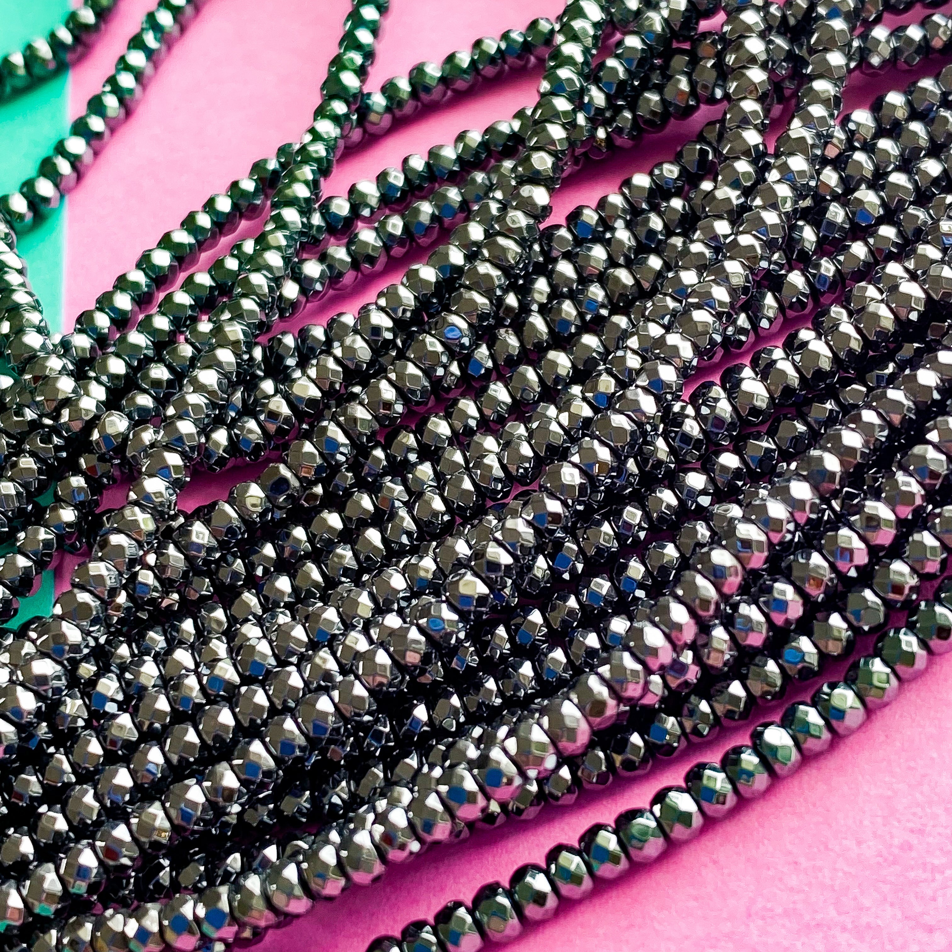 3mm Faceted Hematite Rondelle Strand