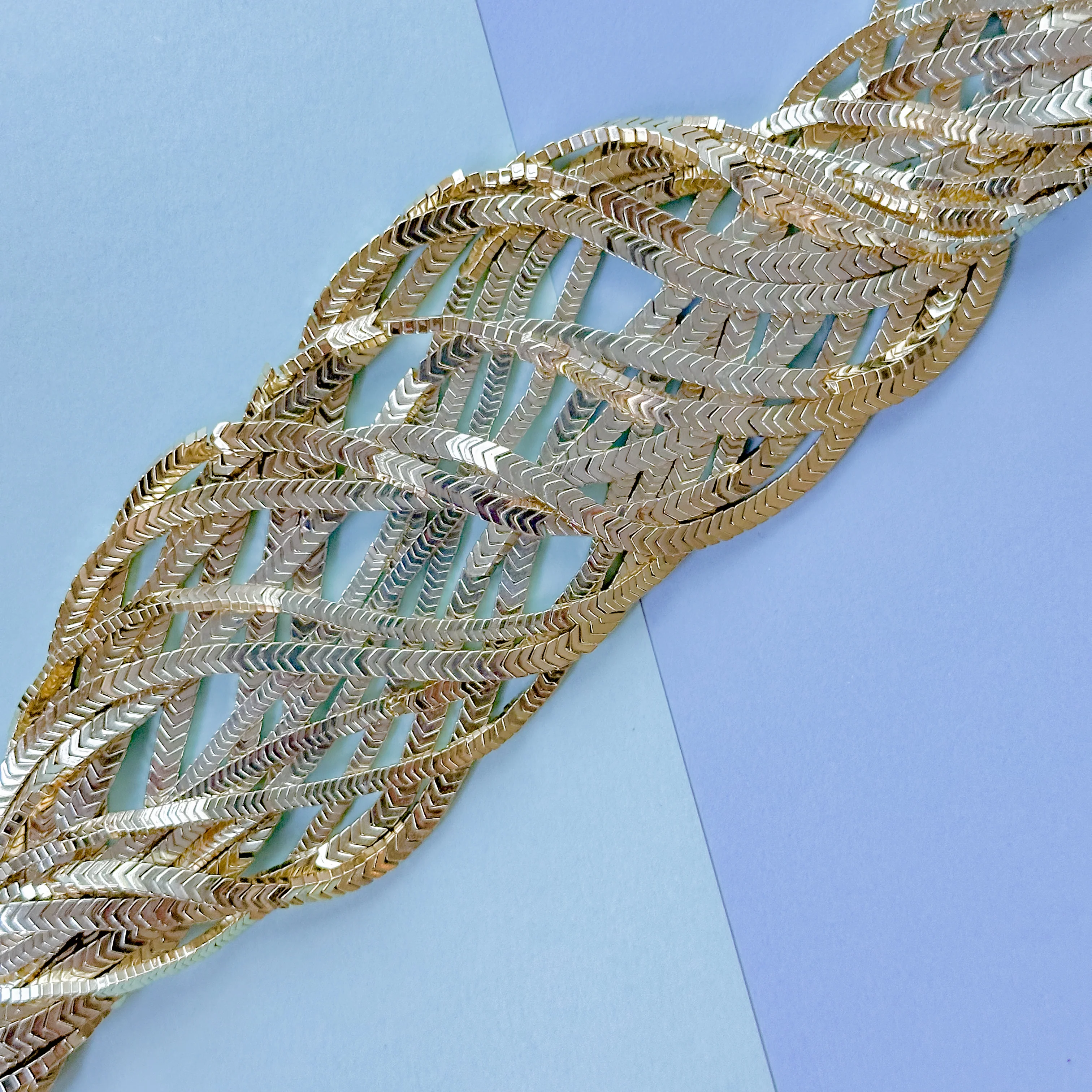 Our best selling gold hematite now in petite, flat herringbone style. Ideal as spacer beads or on their own for a rich chain-link look.Â