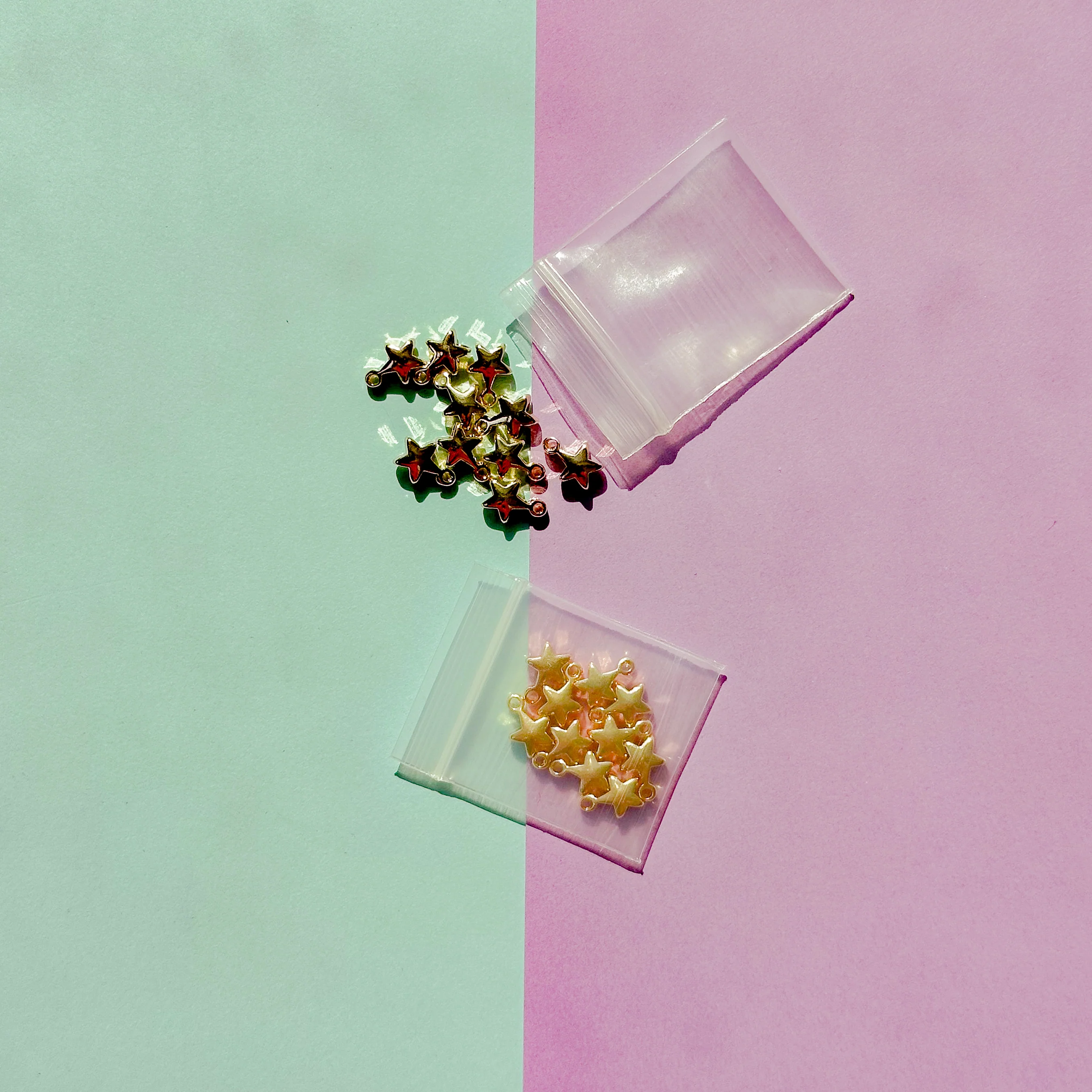 The daintiest, prettiest little wishing stars in shiny gold. Each package contains 10 star charms.Â