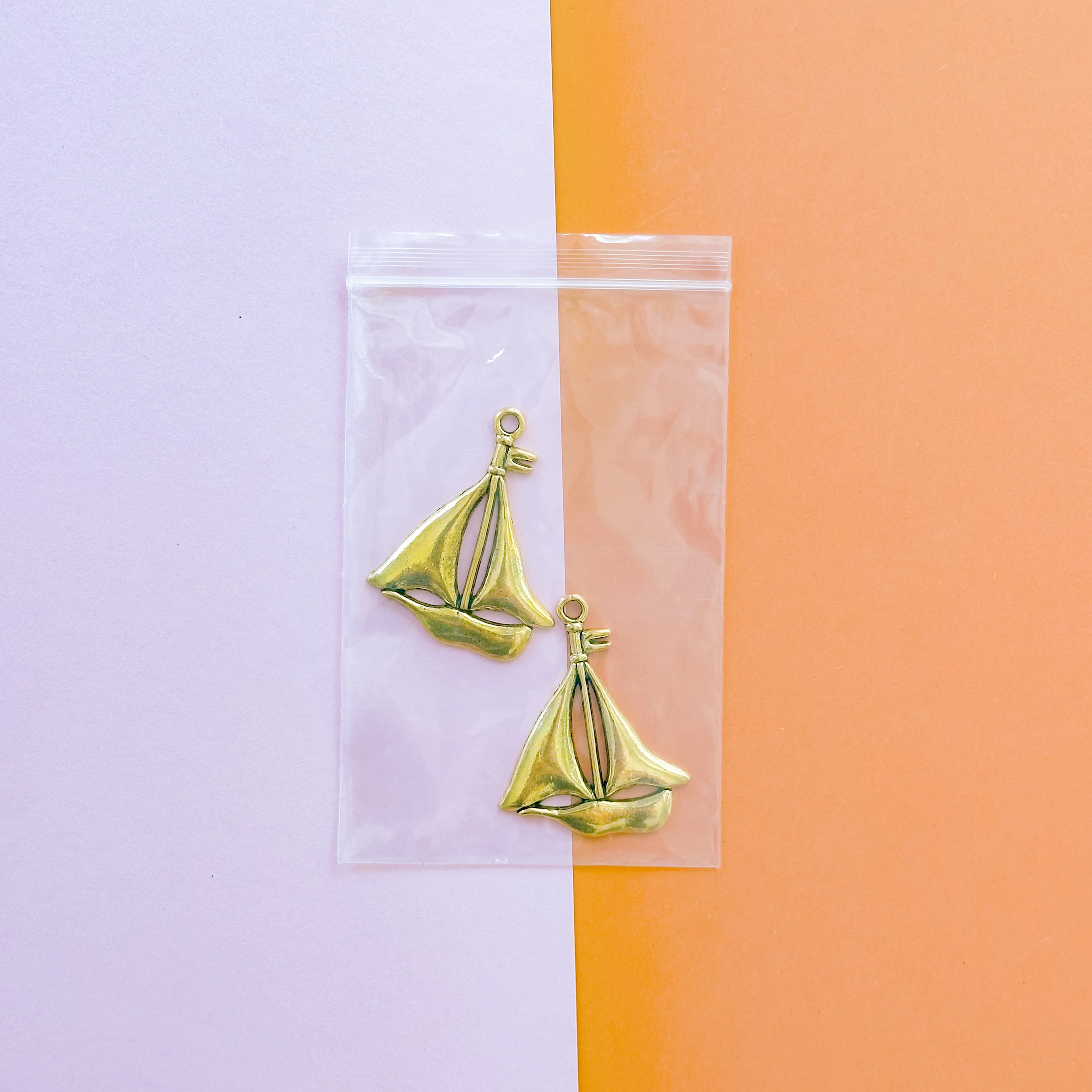 Gold, electroplated pewter nostalgic sail boat charms sold in a pack of 2.Â