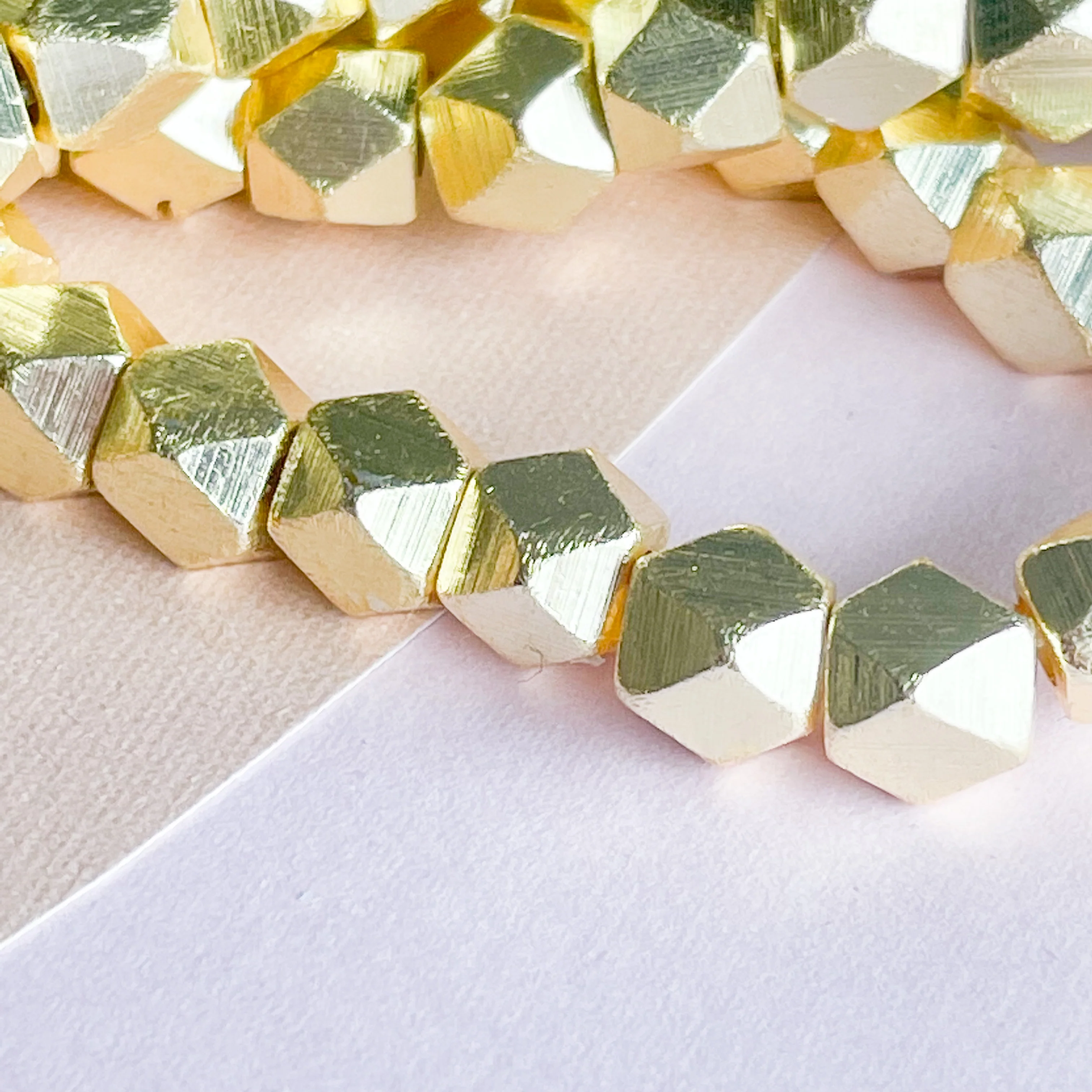 Gold plated copper faceted nugget cubes.Â