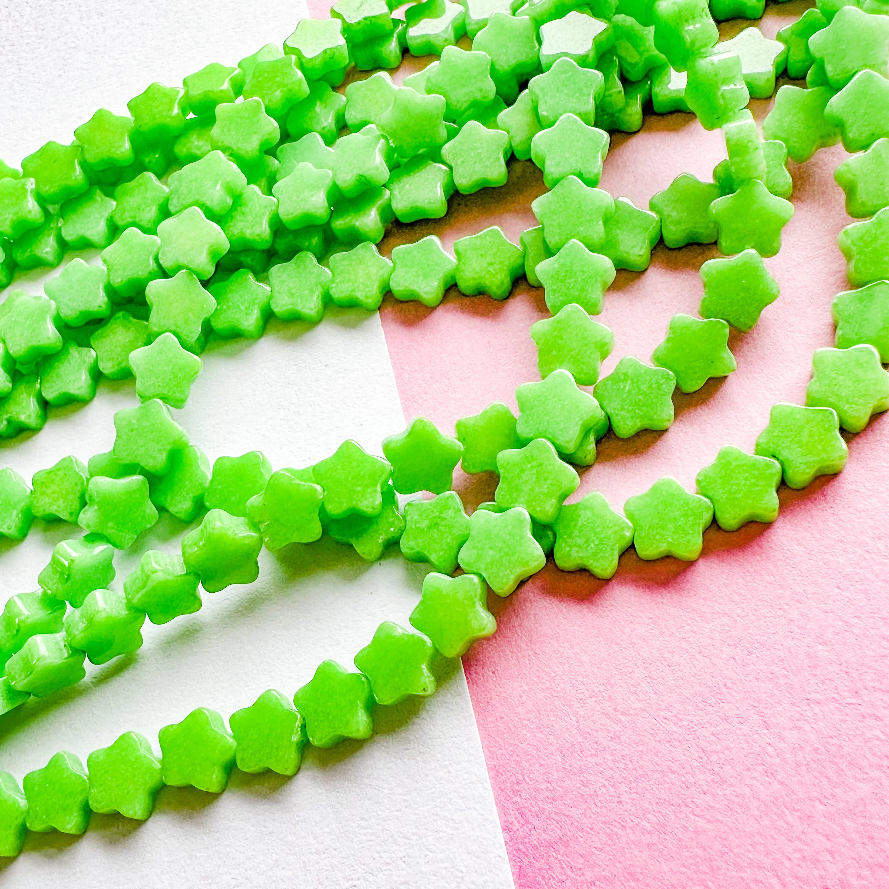 A strand of delicate dyed Calcite stars in a zesty green color.
