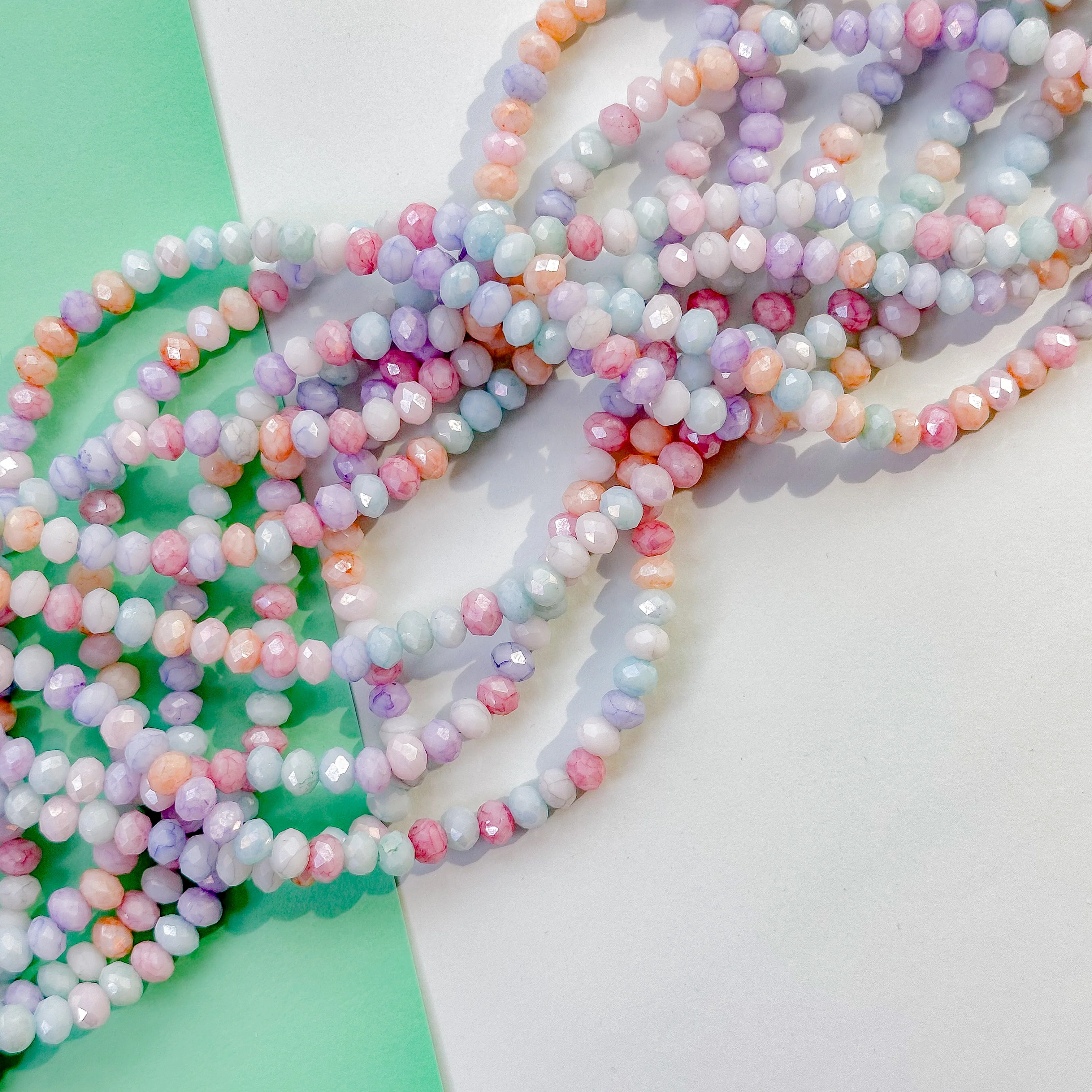 6mm Pastel Rainbow Diamond Crystal Rondelle Strand