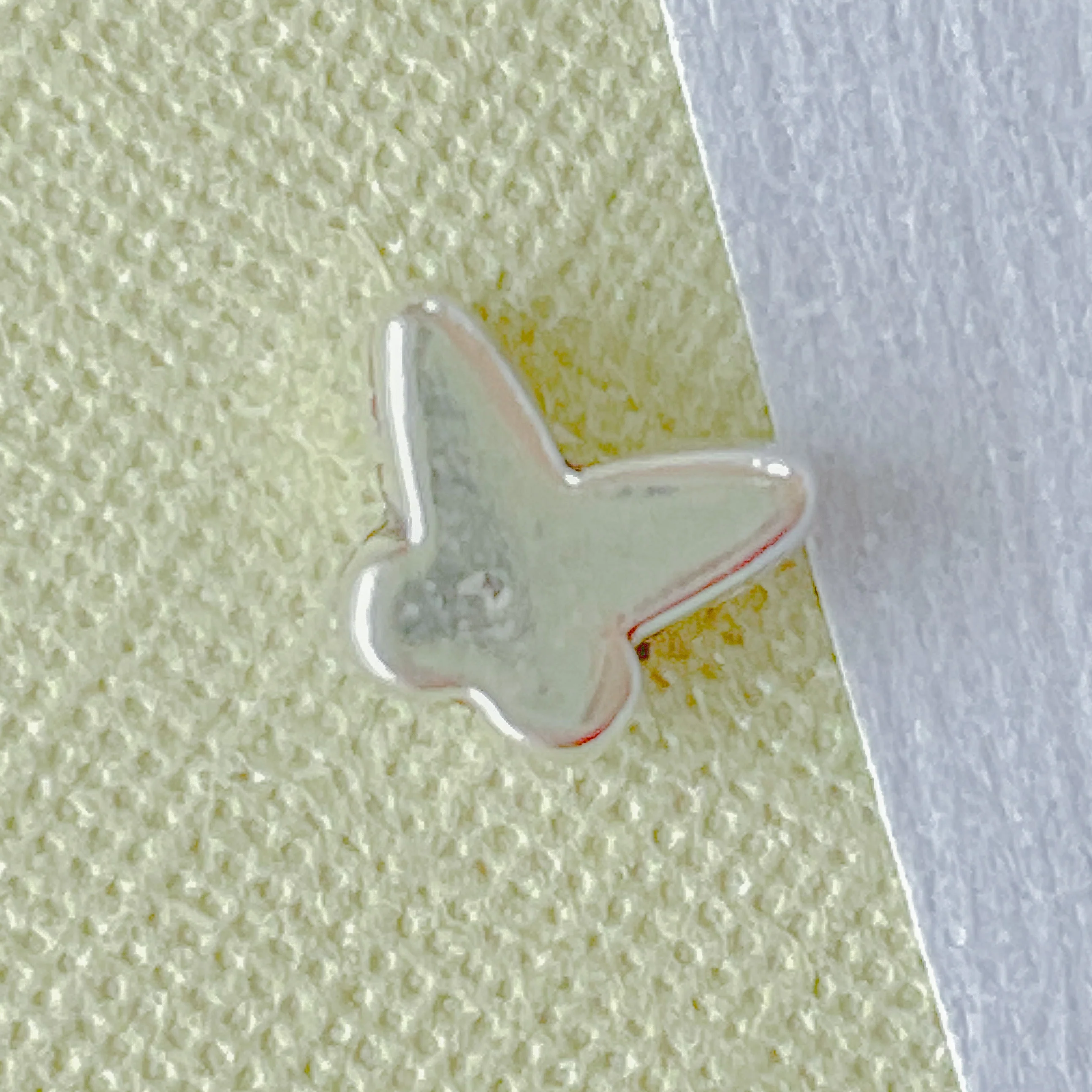 Silver-colored pewter beads in a simple butterfly shape.Â
