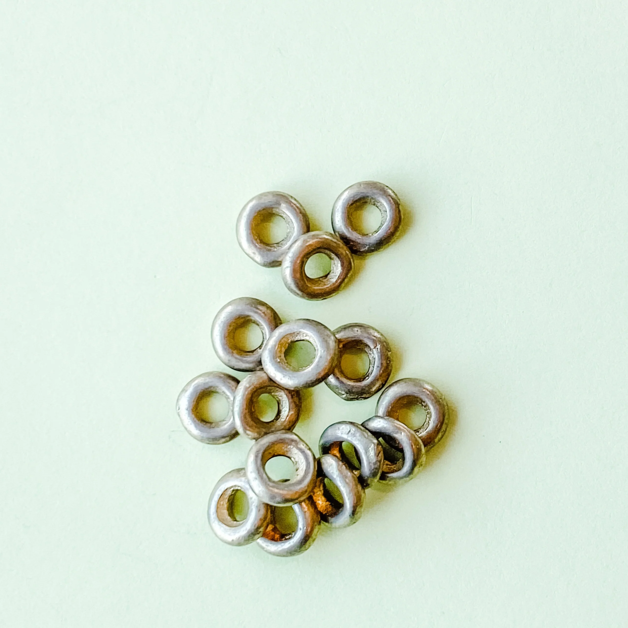 Known around the store as "cheerios," these brass rings are a staple for stretch bracelets and spacers for necklaces. Hand-made genuine brass.Â