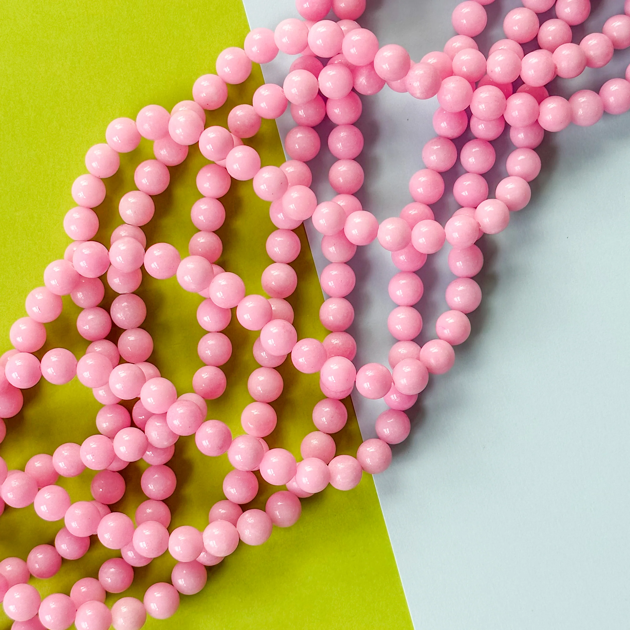Shiny Calcite rounds in color-treated, cheerful pink.