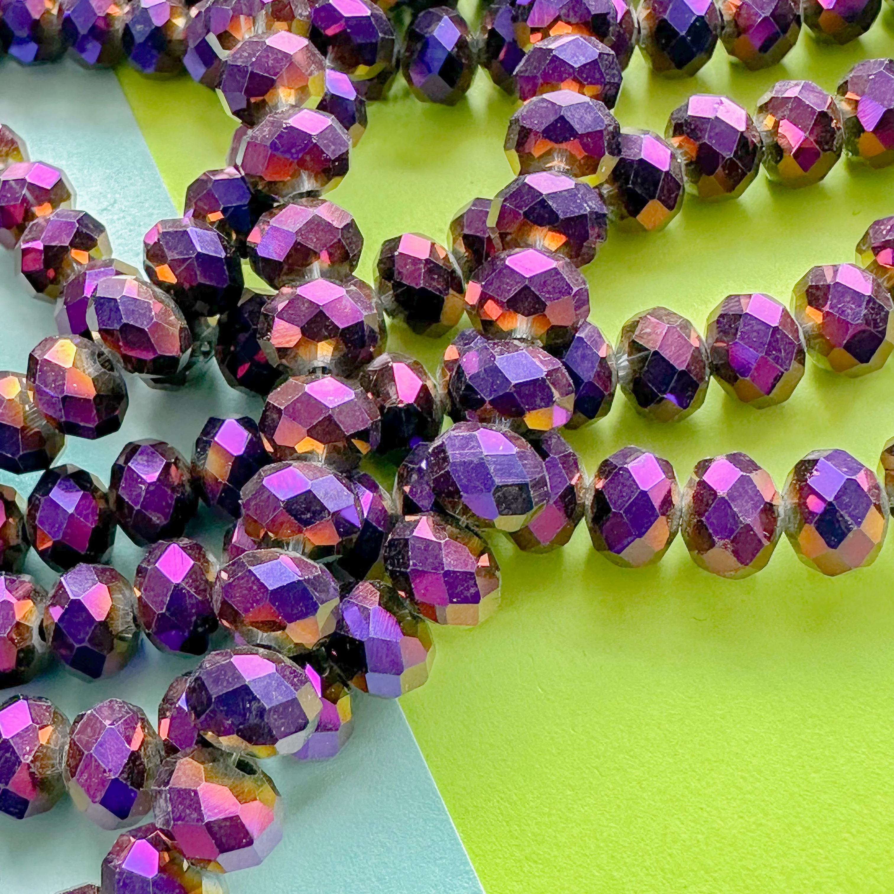 Metallic, bold purple faceted crystal rondelle beads.