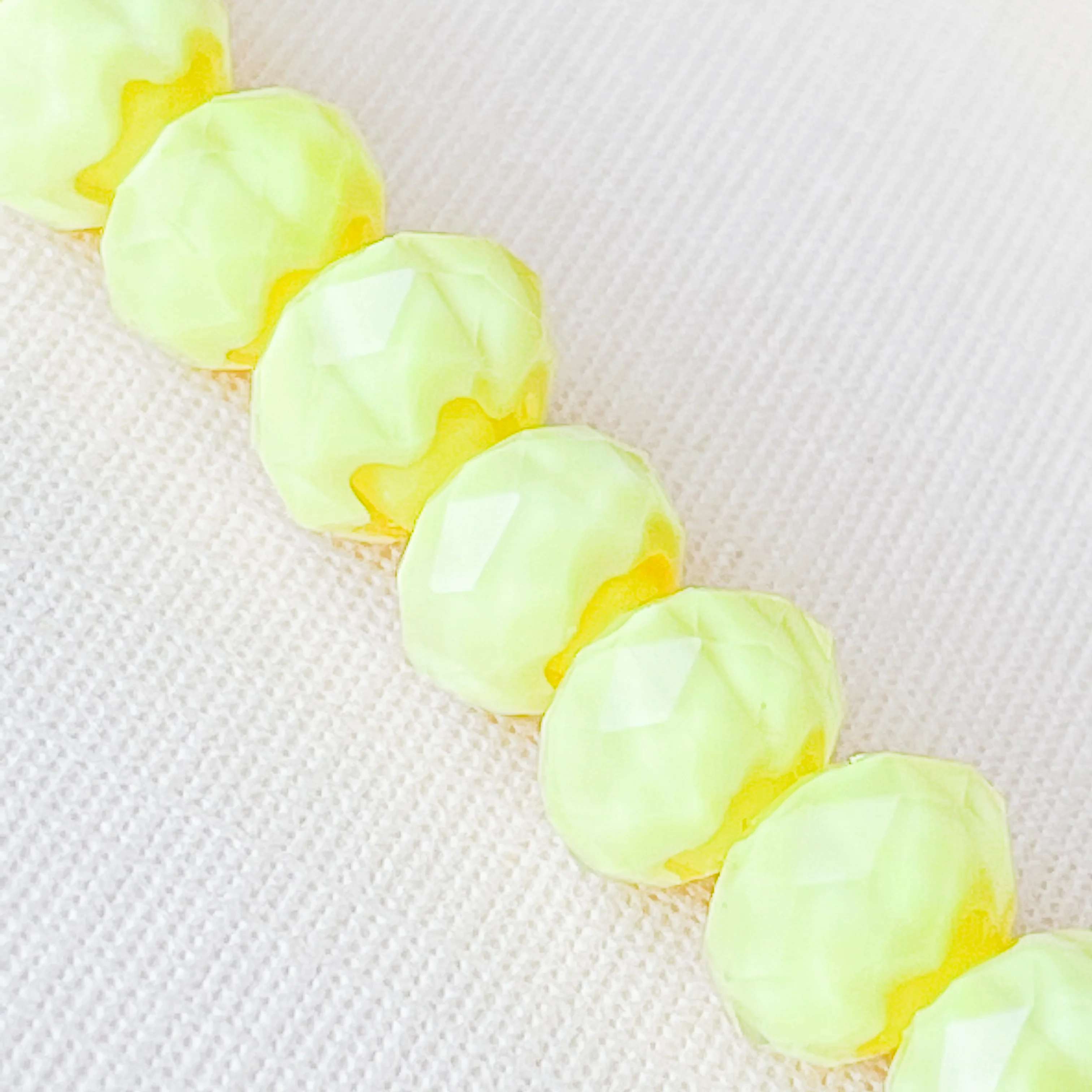 Bright lemon yellow fills these clear faceted crystals. Each bead is unique.