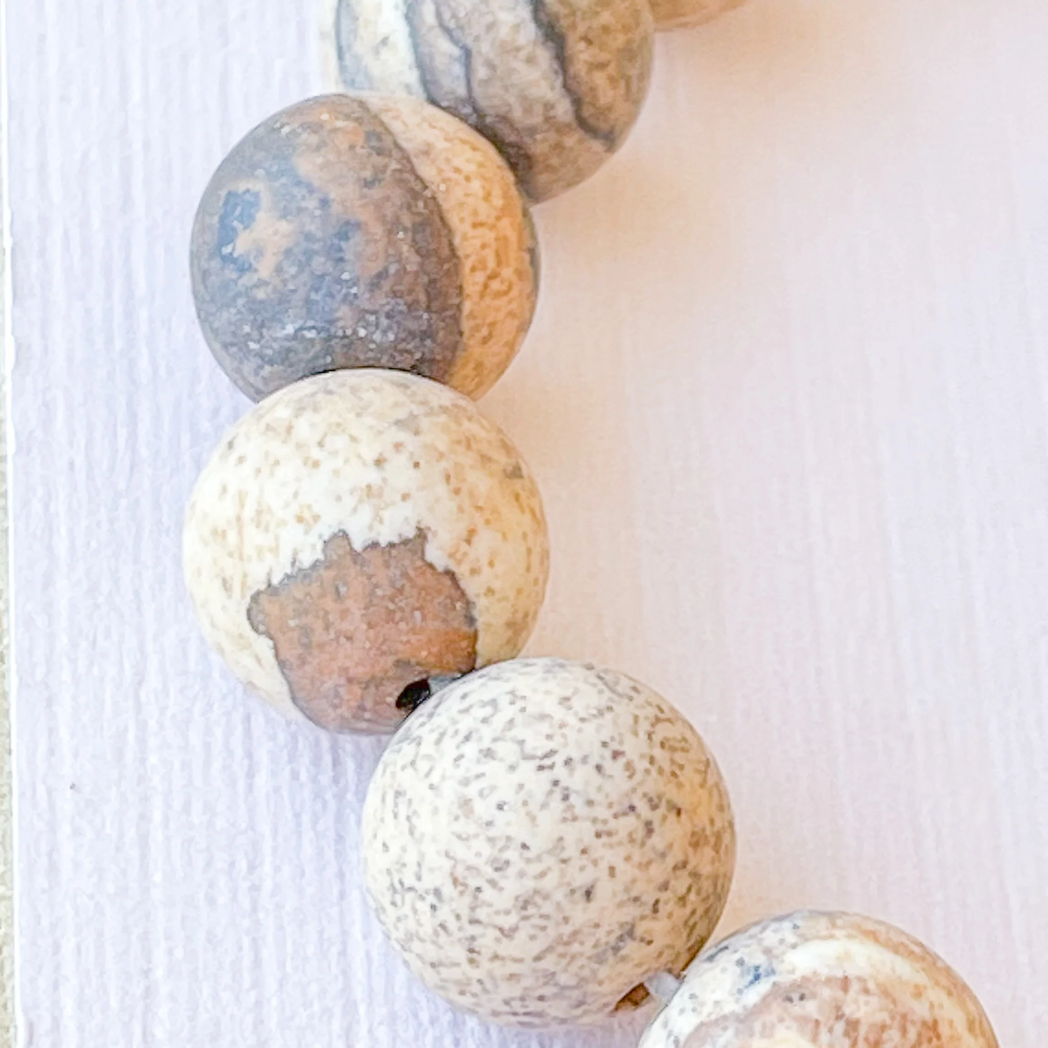 Natural brown, tan, & cream-colored stone carved into smooth spheres with a matte finish.Â