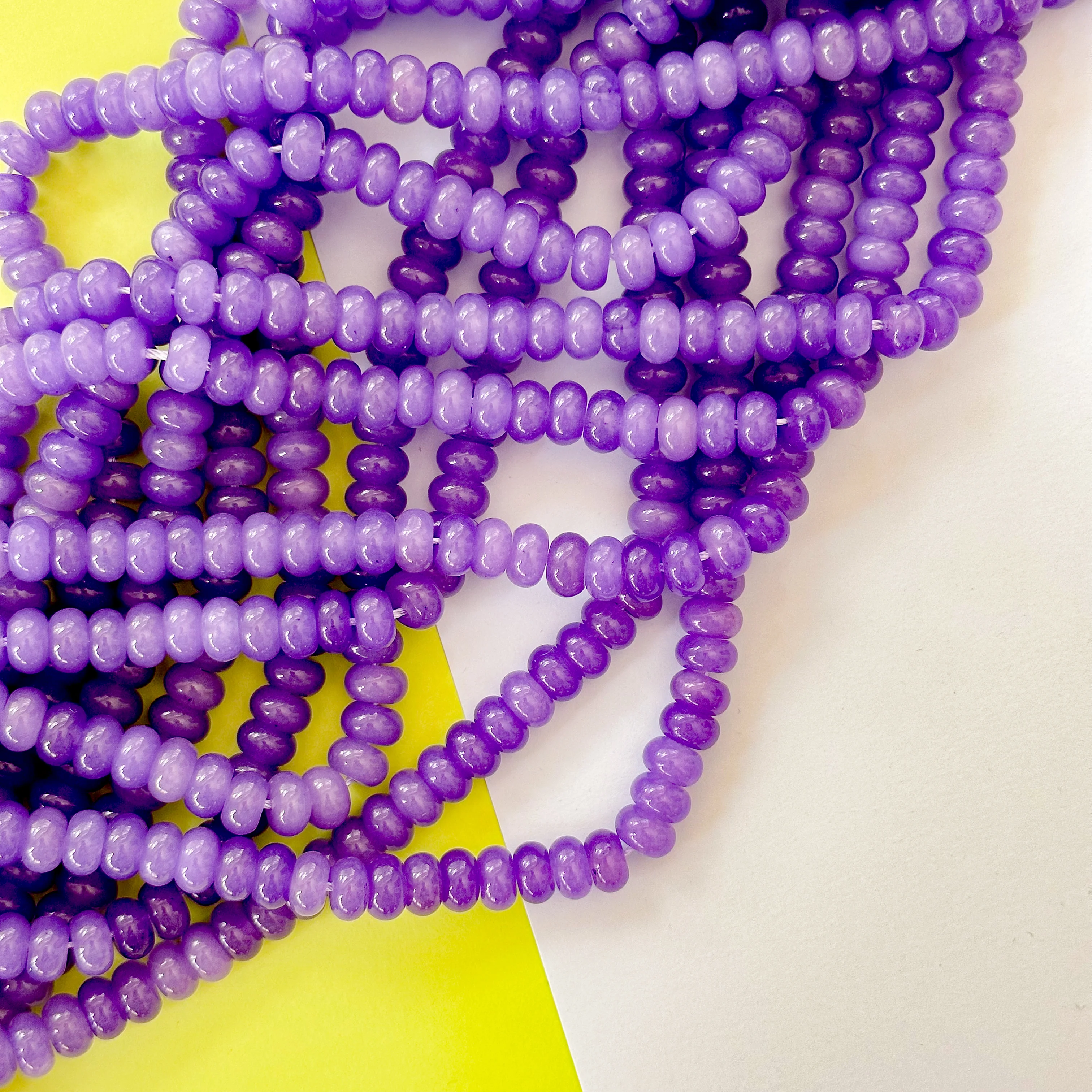 Vibrant, purple dyed Jade in smooth rondelles.