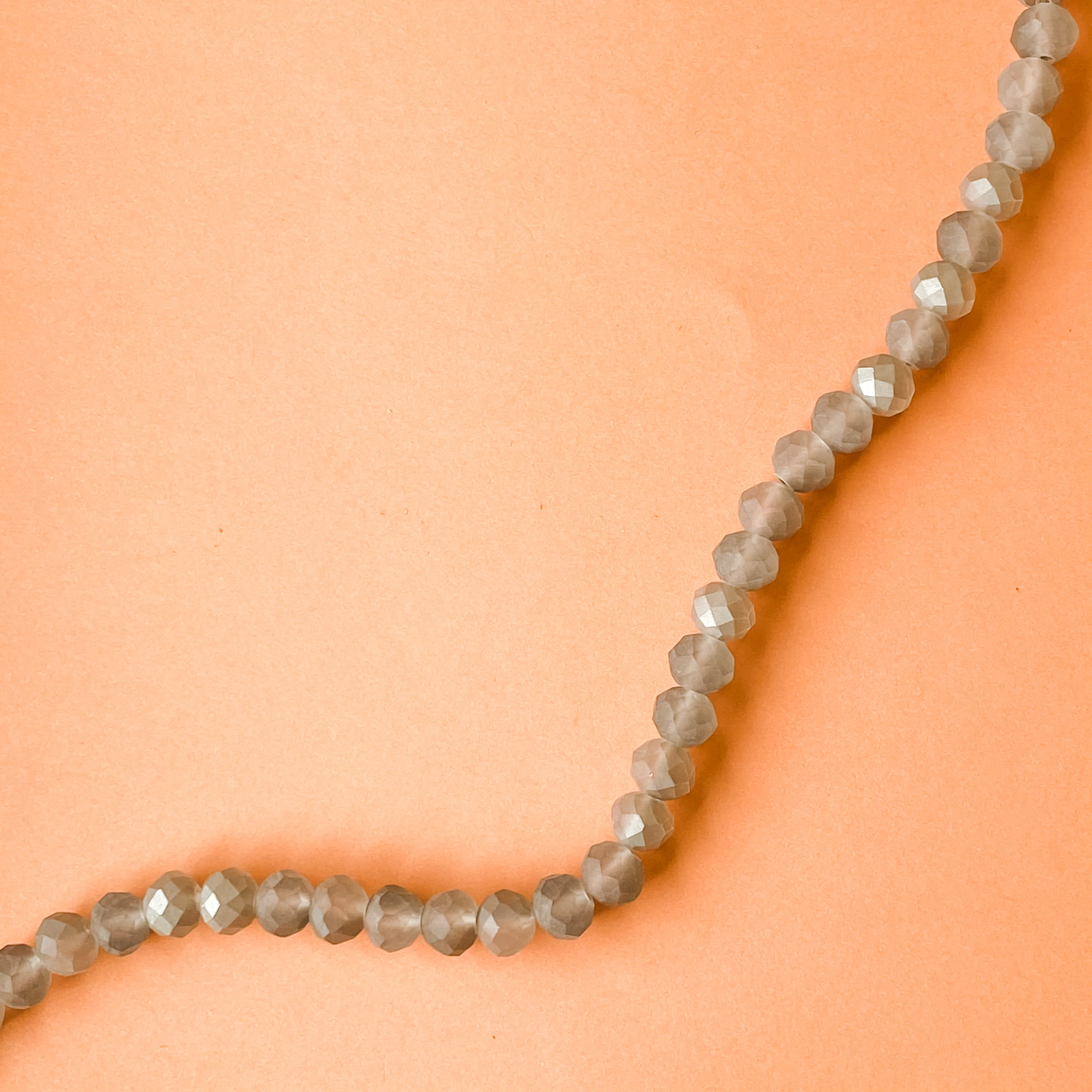 A faceted Chinese crystal strand in a slightly translucent matte metallic gray color.