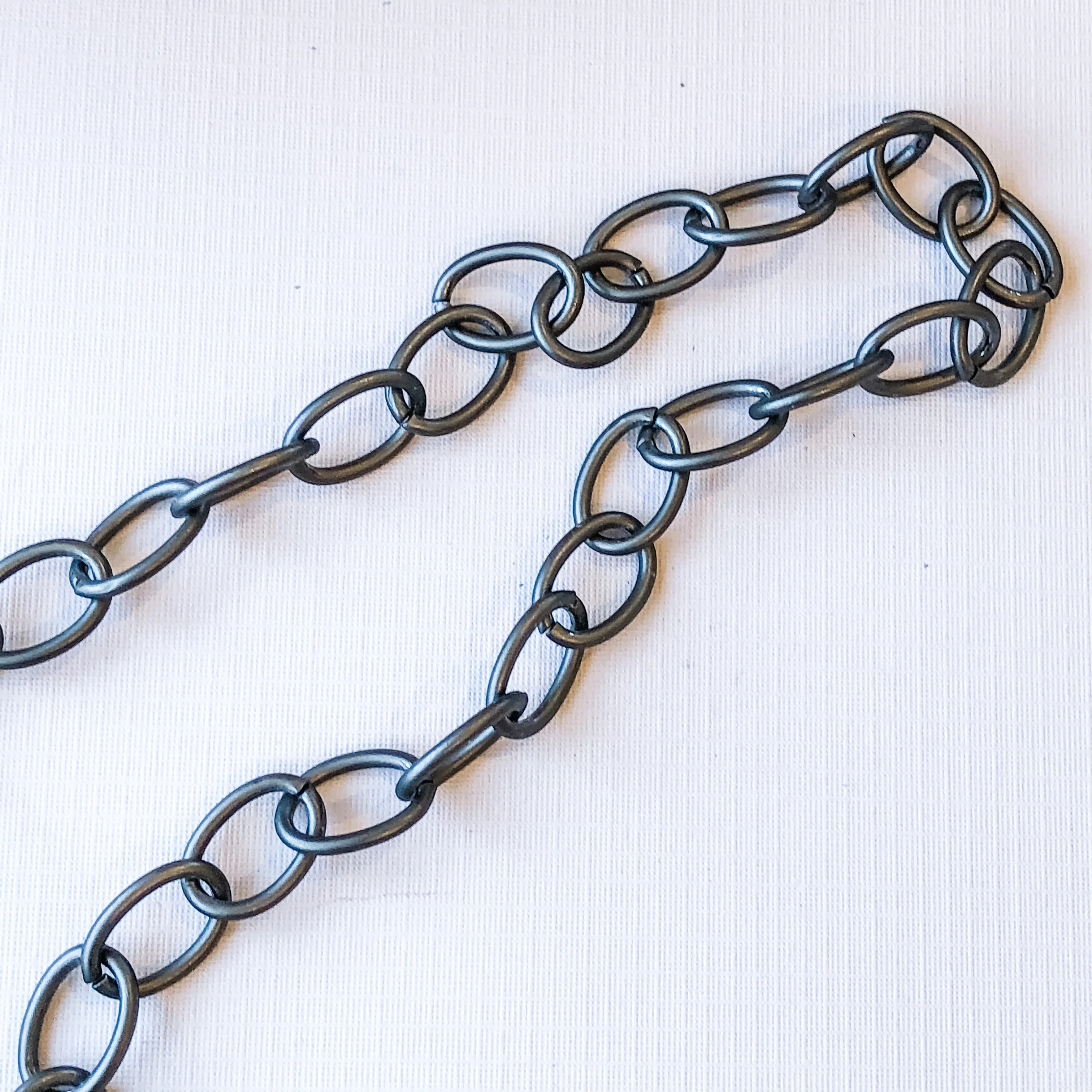 Measurements: Chain links measure 11mm x 15mm and have open rings. Sold by the foot