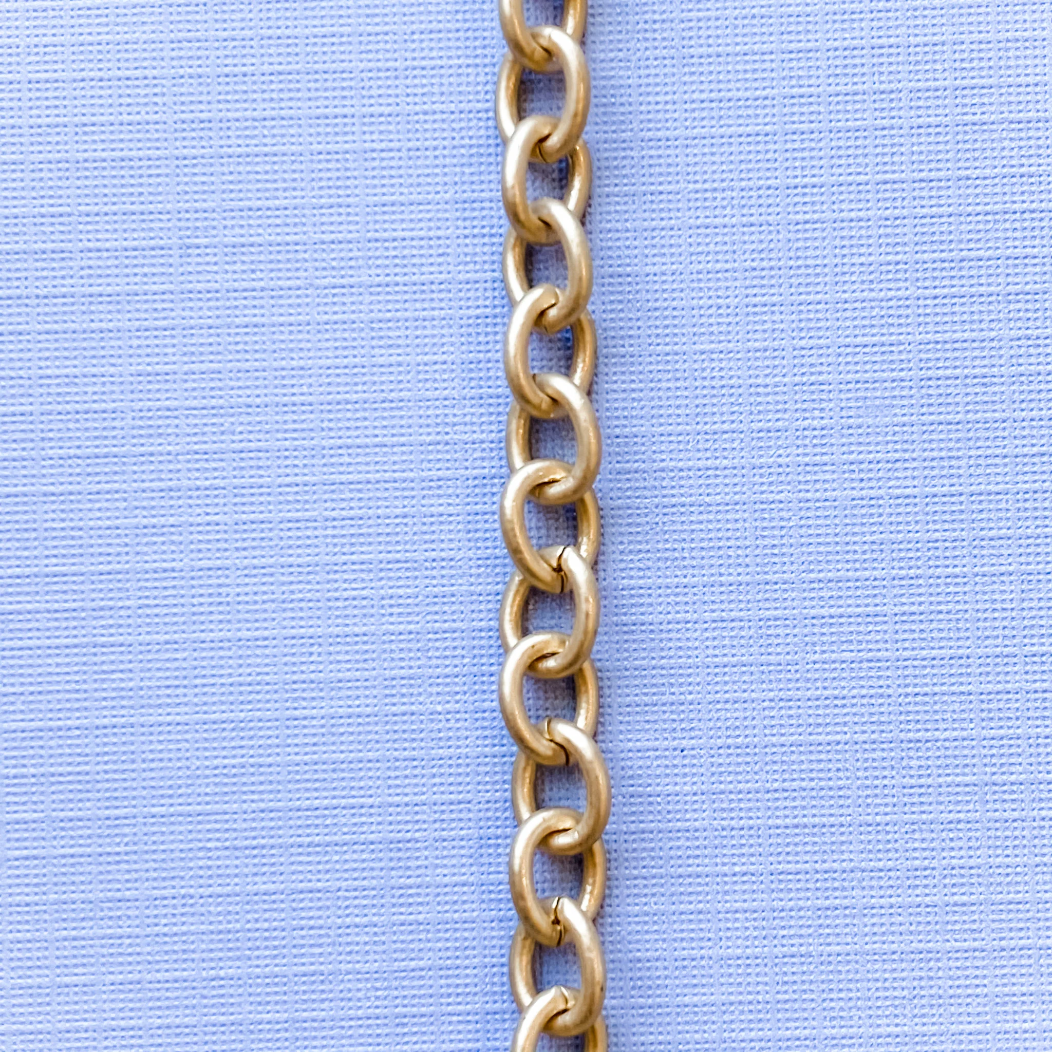 A brushed gold cable link is a perfect and substantial option for your pendants and charms. Satin, brushed finish. Electroplated gold metal. Links are not soldered and can be opened with pliers.Â