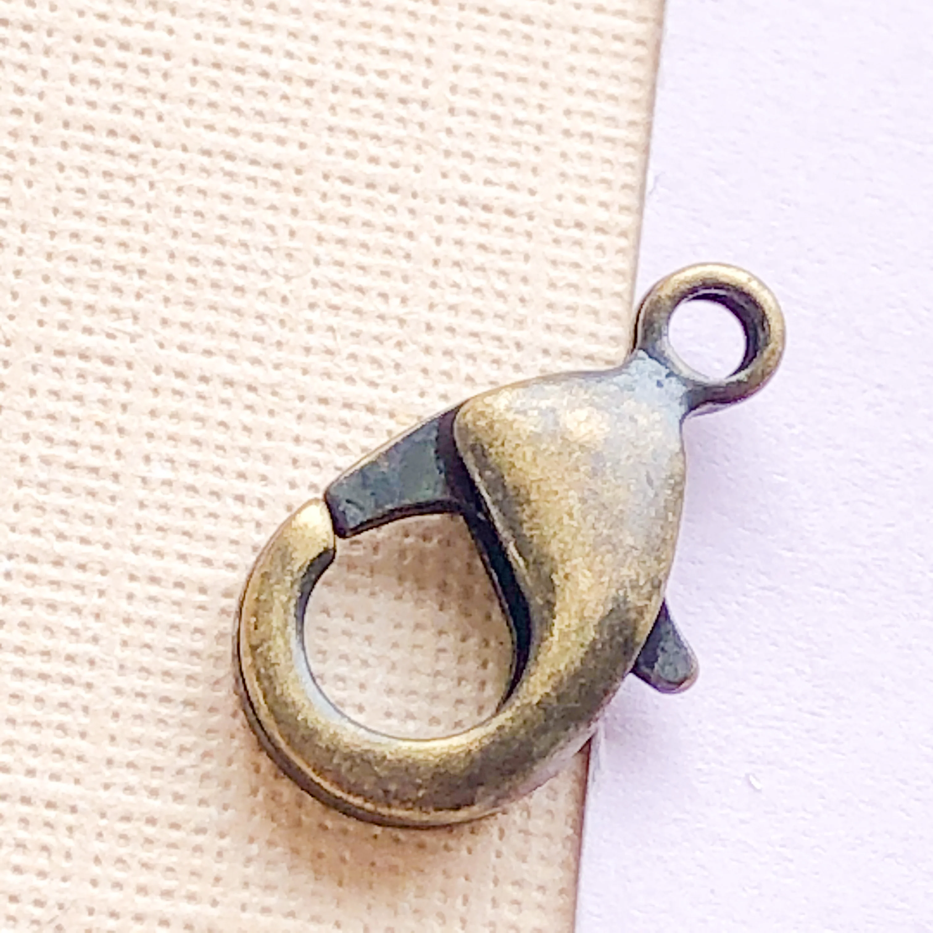 4 High-quality brass-based lobster claws with a heavy electro finish. Antique brass color. Â