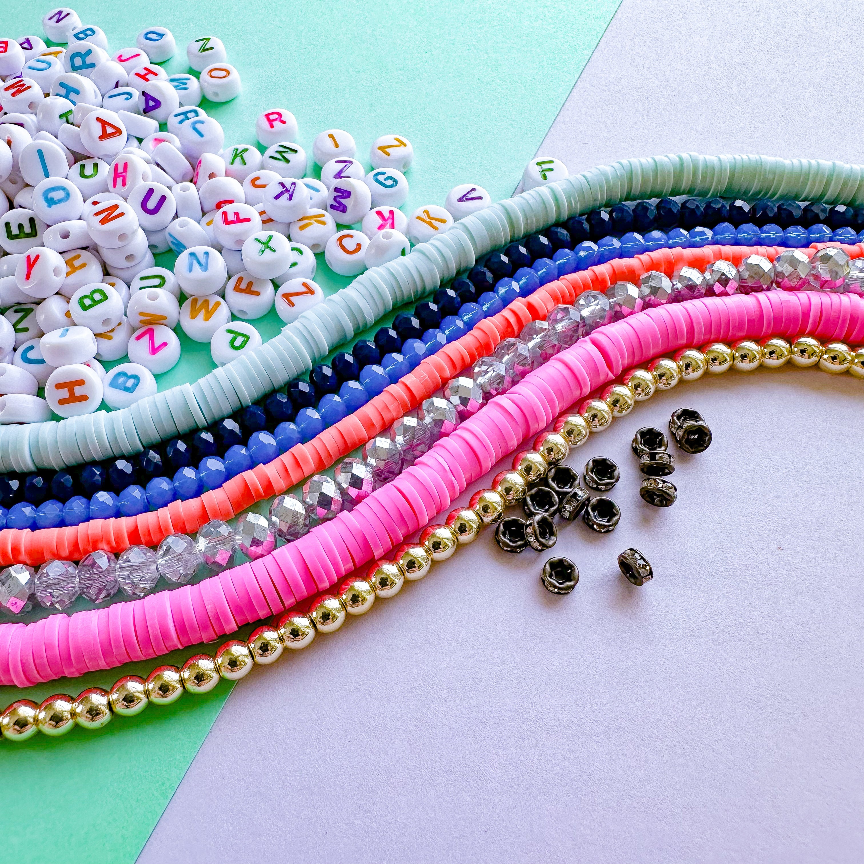Creating this celebratory stack is easier than you think! Our stretchy bracelet making kits are a great project for all skill levels including beginners. As always, all you'll need is a pair of scissors or cutters, and some tape. Each of our stretchy bracelet kits come with enough materials and supplies to make 12 or more bracelets, depending on your wrist size.